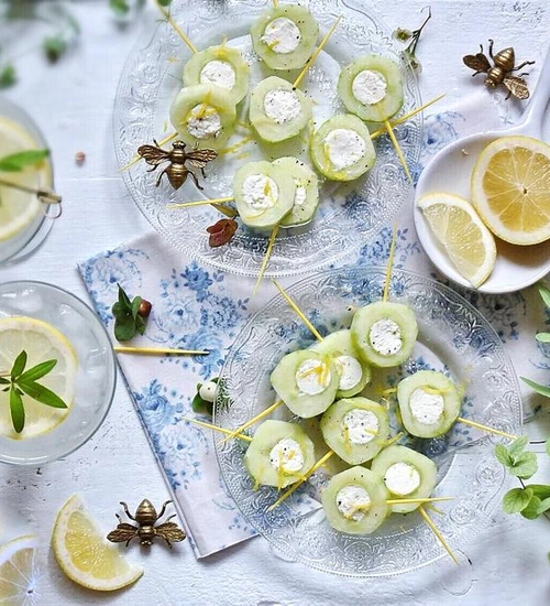Refreshing cucumbers with fresh cheese and herbs are a light appetizer and very easy to make. The Cointreau will bring out all the taste and freshness.