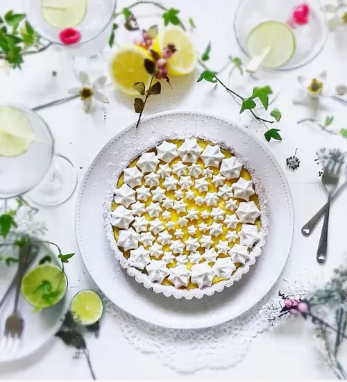 Lemon tart with mini meringues