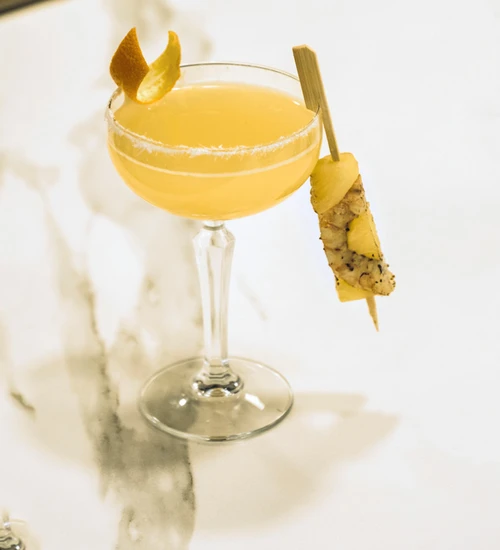 Food presentation : serve one to two brochette per cocktails in a small container or directly on the top of the glass.