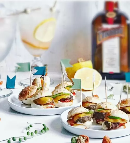 Brush the inside of the bun with ketchup and mayonnaise, add a slice of gherkin, the mini patty and a slide of cheese, then add the top half of the bun