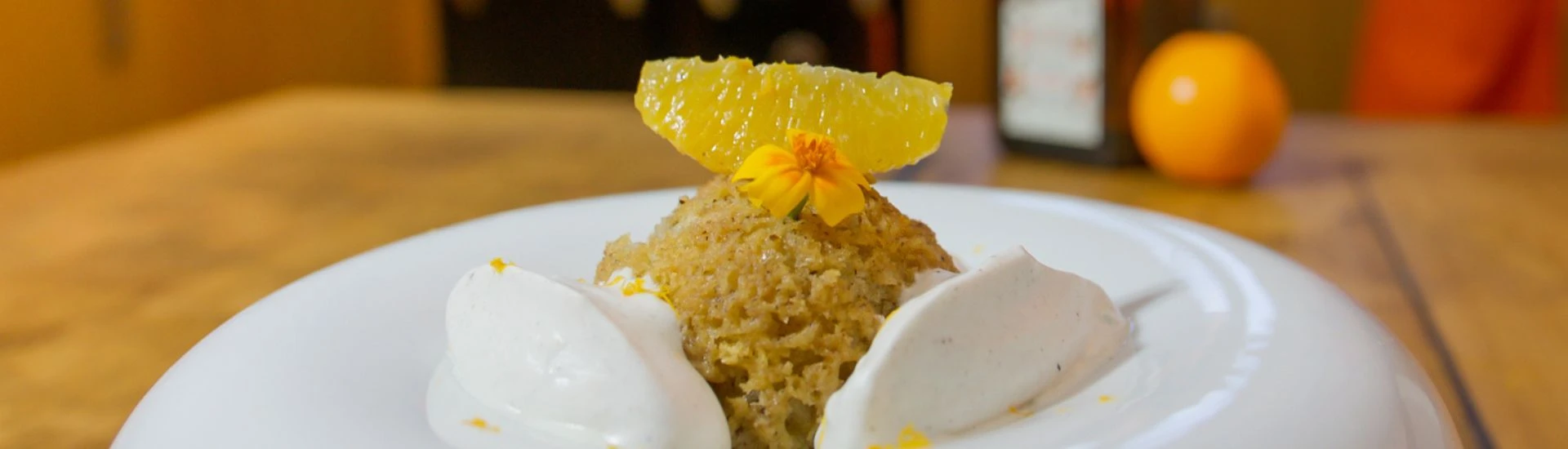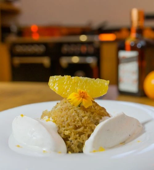 Whip the cream, then add the vanilla, sugar and Cointreau l'Unique.